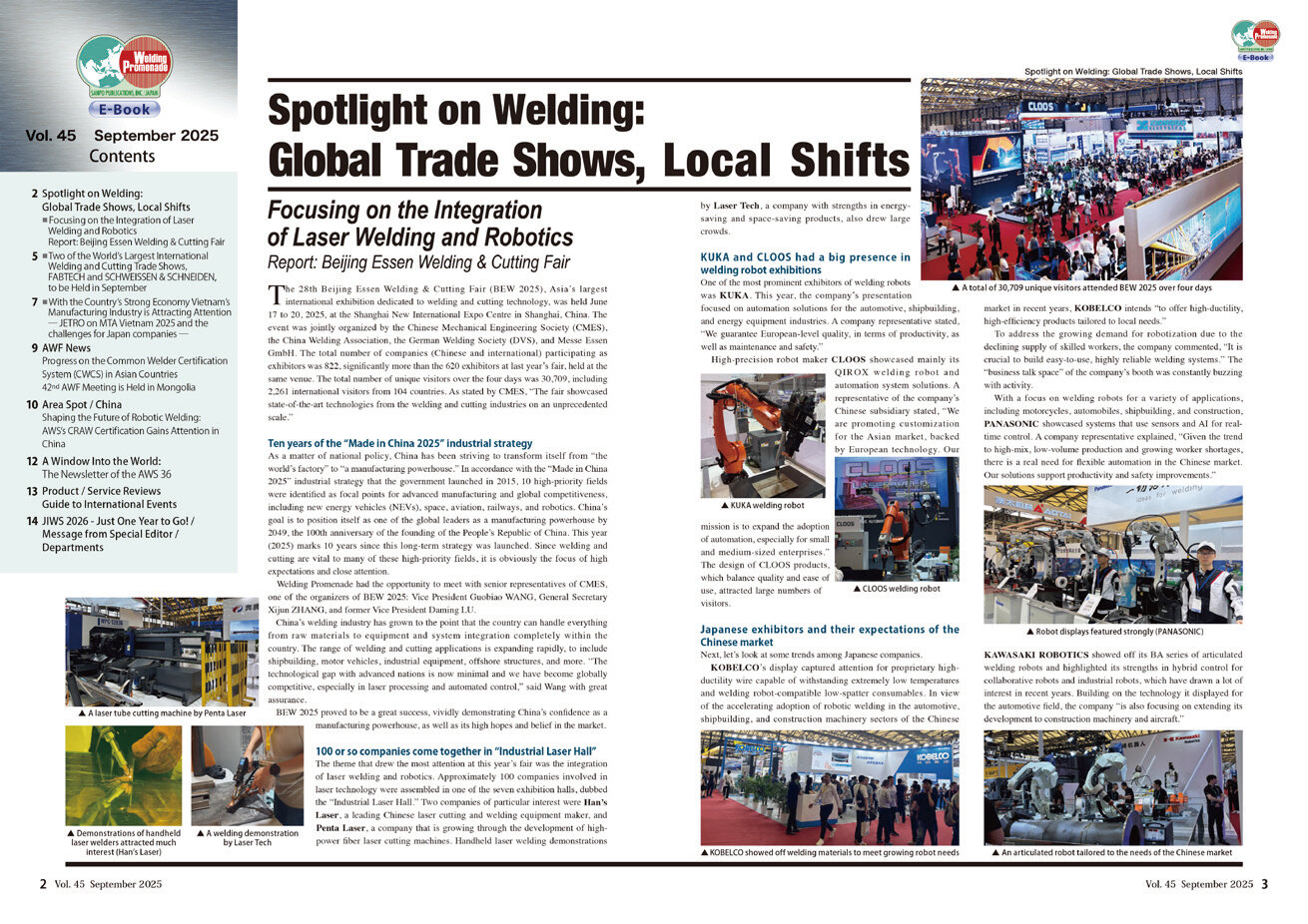 2026年3月2日に発刊するVol.46では、いよいよ2026年9月に開催となるわが国最大の溶接・接合、切断展示会「2026国際ウエルディングショー」を特集し、国内外の出展企業から本ショーに寄せる期待と成果を聞きます。